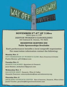 The following organizations are accepting reservations and will receive all proceeds from their evening’s benefit performance: